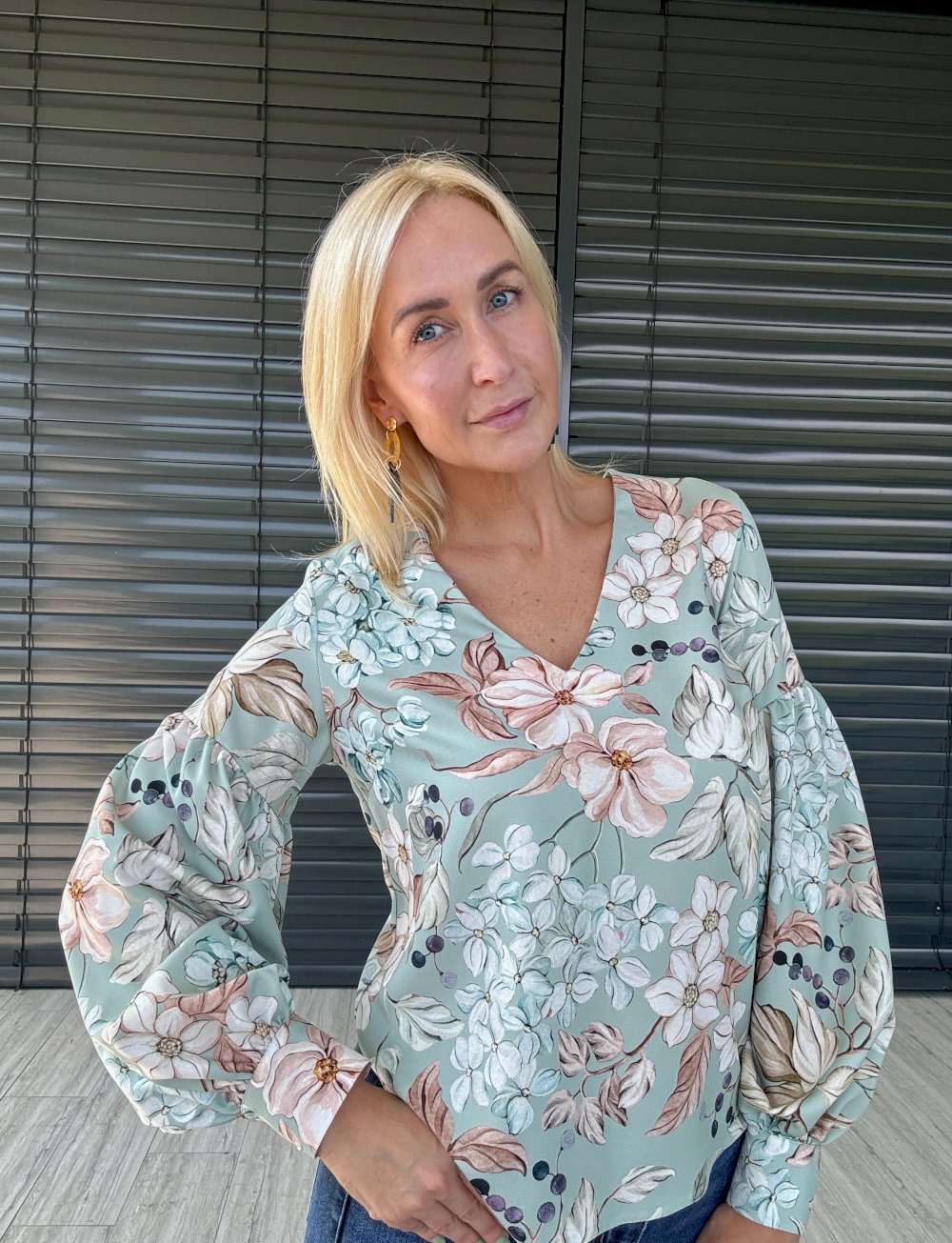 Zelená farebná blúzka s potlačou- Vita Len PL